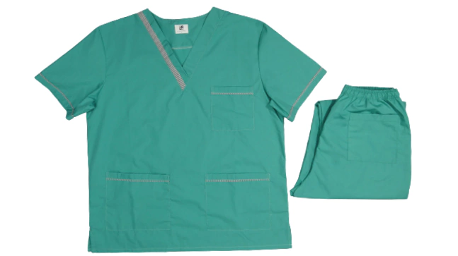 Chaqueta: Cuello en V, vivos en cuello. 2 bolsillos inferiores y uno superior.