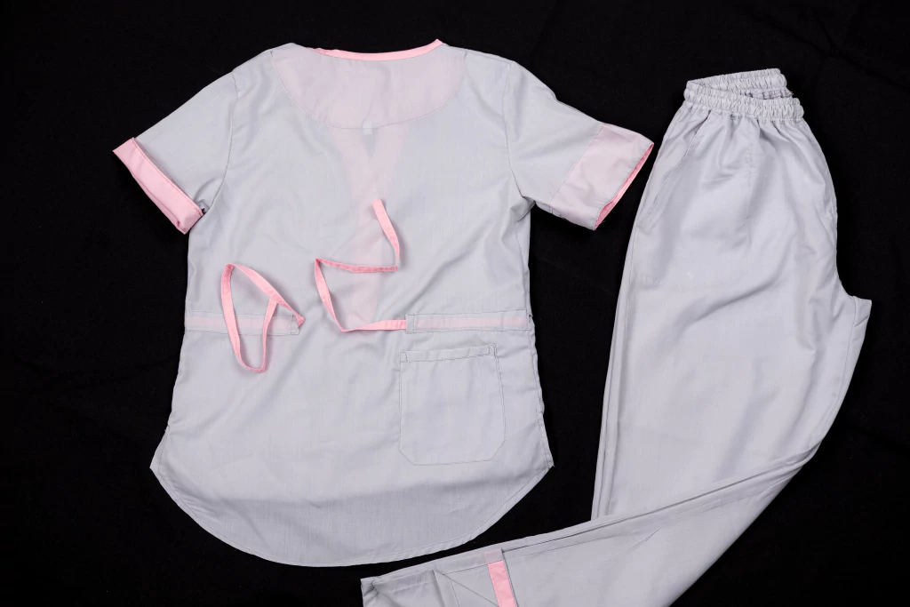 Color: gris perla con vivos en rosa pastel