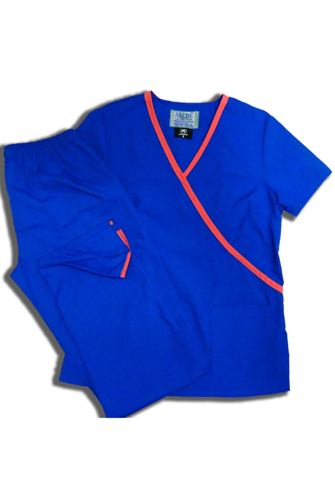 Chaqueta: Cuello V , dos bolsillos delanteros Vivos en chaqueta cruzando . Chaqueta entallada